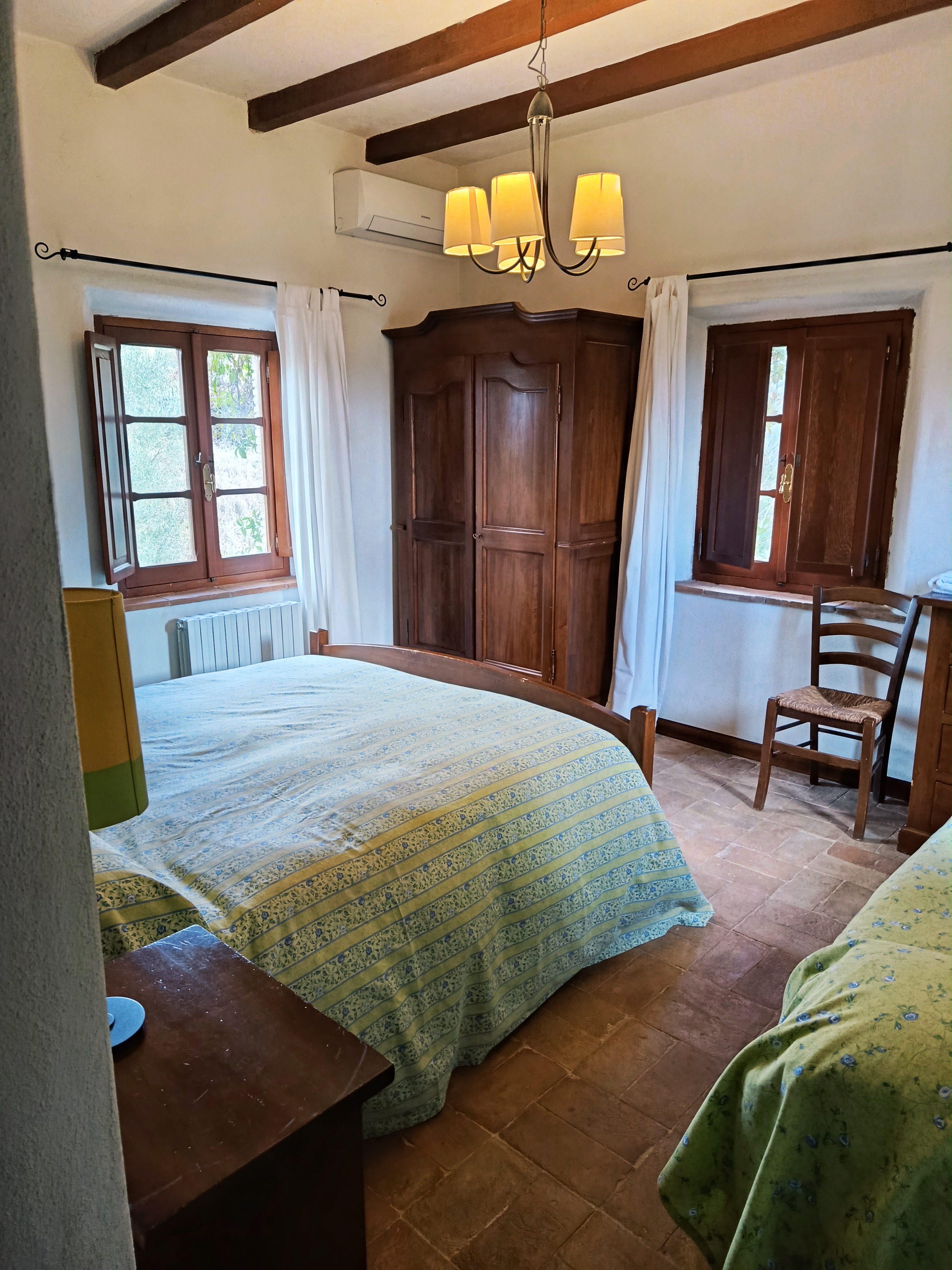Mentuccia è un' accogliente camera matrimoniale con accesso indipendente che si affaccia sul giardino e le colline circostanti. Dispone del servizio privato con doccia ed è ideale per una coppia o amici. Aria condizionata, tv e wi-fi.